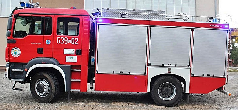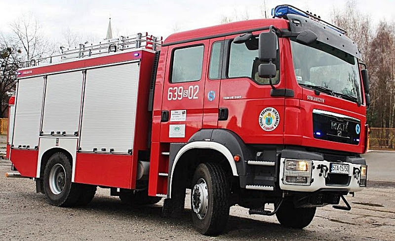 Ciężki samochód ratowniczo-gaśniczy na podwoziu MAN TGM 18.340 zabudowany przez firmę Stolarczyk.